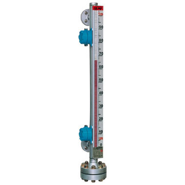 控制型是在翻板液位計的基礎(chǔ)上增加了磁控開關(guān),在監(jiān)測液位的同時磁控開關(guān)信號可用于對液位進(jìn)行控制或報警;遠(yuǎn)傳型是在翻柱液位計的基礎(chǔ)上增加了 4~20mA 變送傳感器,在現(xiàn)場監(jiān)測液位的同時將液位的變化通過變送傳感器、線纜及儀表傳到控制室,實現(xiàn)遠(yuǎn)程監(jiān)測和控制。